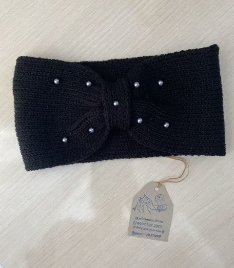 هدبند پاپیونی مرواریدی مشکی عدد